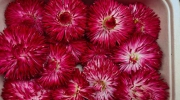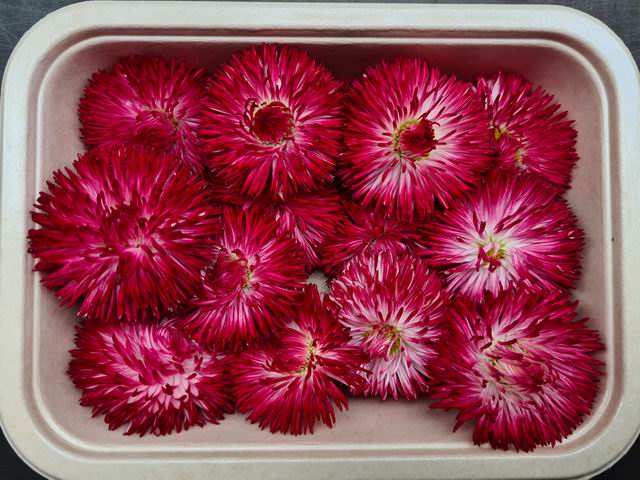 Bij Puur Aroma telen we meestal het 'Pompon gevuld bloemig' type bloem. Deze zijn geweldig te pellen, zie foto. Zo kunt met de gepelde kroonblaadjes zelf vrij navigeren in uw gerecht. Als dat geen fesst is dan weet ik het niet meer!