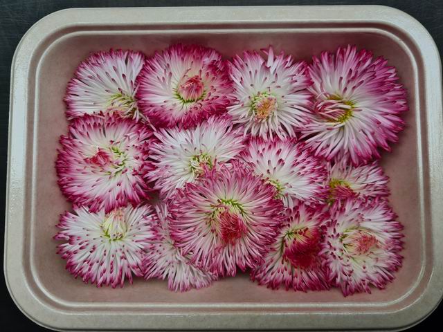 WAARSCHUWING: In beginsel komen madeliefjes en vele andere eetbare bloemen uit de sierteelt-tuinbouw. Maar de sierteelt-tuinbouw is uiteraard geen voedingstuinbouw. In de voedingstuinbouw gelden wezenlijk andere regels omtrent pesticiden (land- en tuinbouwgif) gebruik dan in de sierteelt-tuinbouw. Dus ik hoop dat u zich dit goed realiseert. Verzeker uzelf dus altijd dat u biologisch gecertificeerde planten koopt als het om eetbare bloemen gaat. Feitelijk sowieso als het om kruiden gaat zou u niet anders moeten willen dan biologisch gecertificeerd.